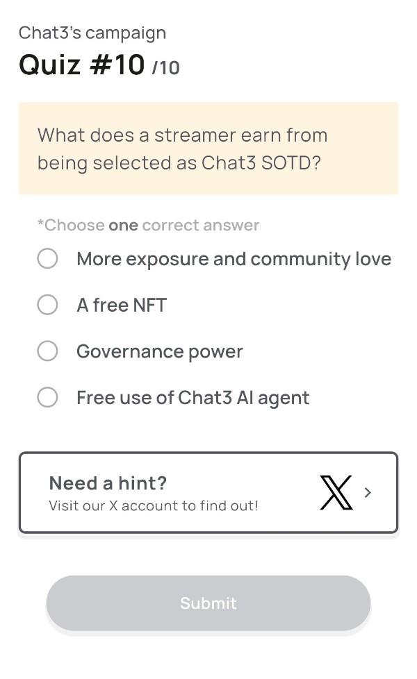 Chat3の「SOTD」に選ばれることは、その日の注目配信者としてフィーチャーされることを意味し、視聴数の増加やSNSでの紹介、コミュニティの注目を集めるといったメリットが得られます。報酬的価値以上に、配信者のブランディング強化につながる点が大きいです。