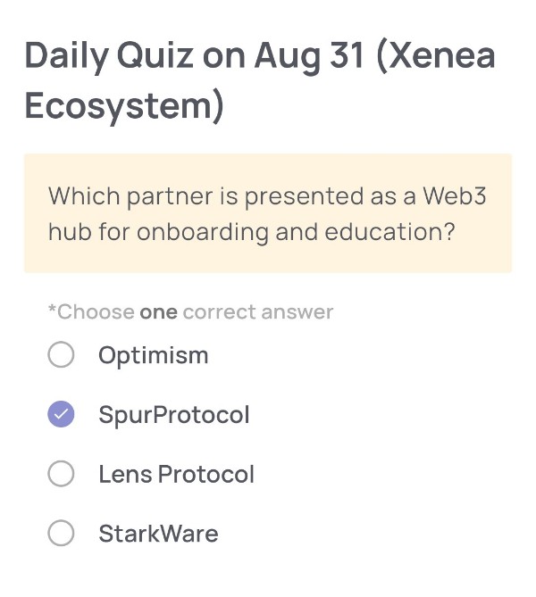 Xeneaエコシステムの公式資料によれば、SpurProtocolはWeb3初心者を対象としたオンボーディングや教育のためのハブとして位置付けられています。OptimismやStarkWareはL2技術、Lens Protocolはソーシャルグラフに強みを持ちますが、教育とユーザー導入を目的とした取り組みではSpurProtocolが該当します。