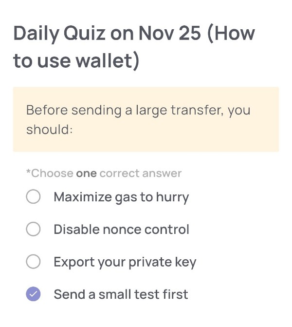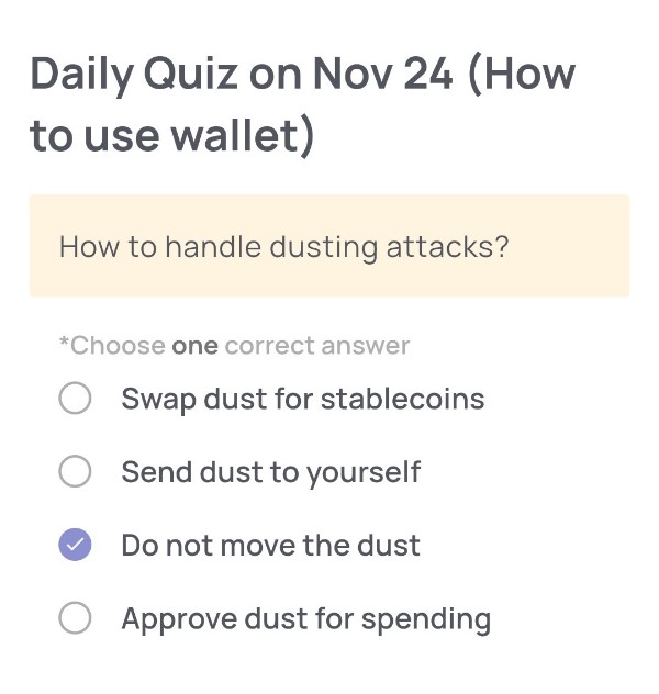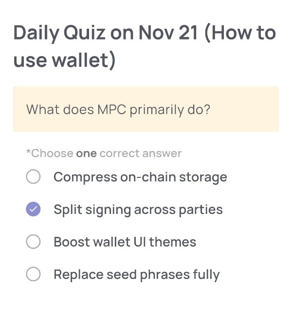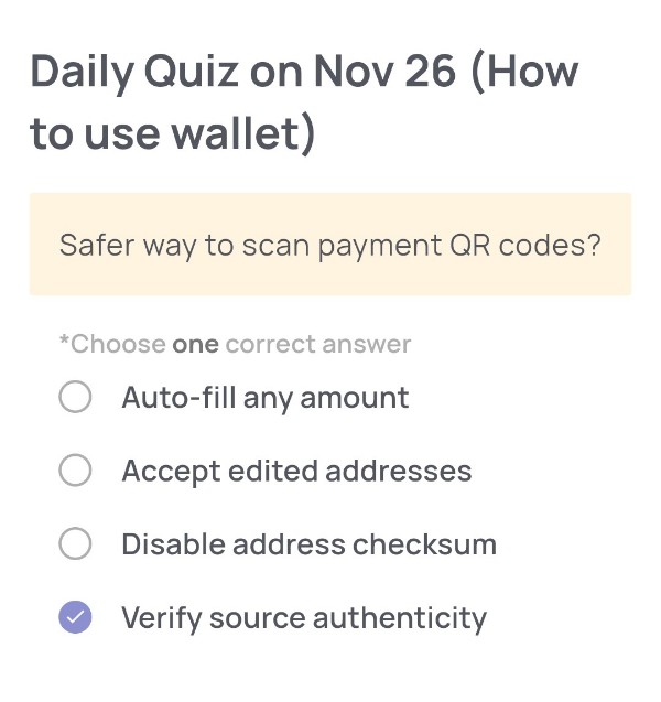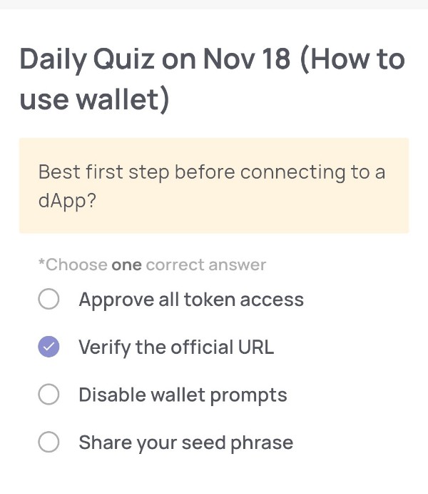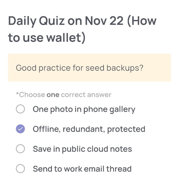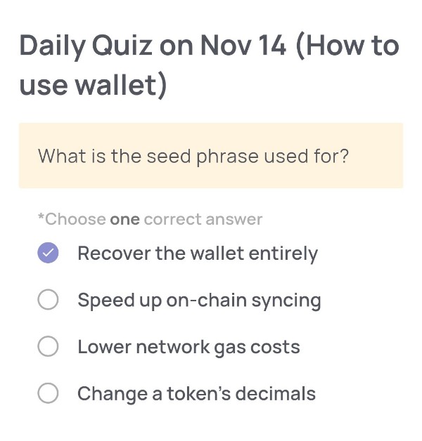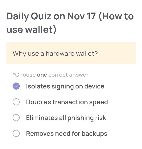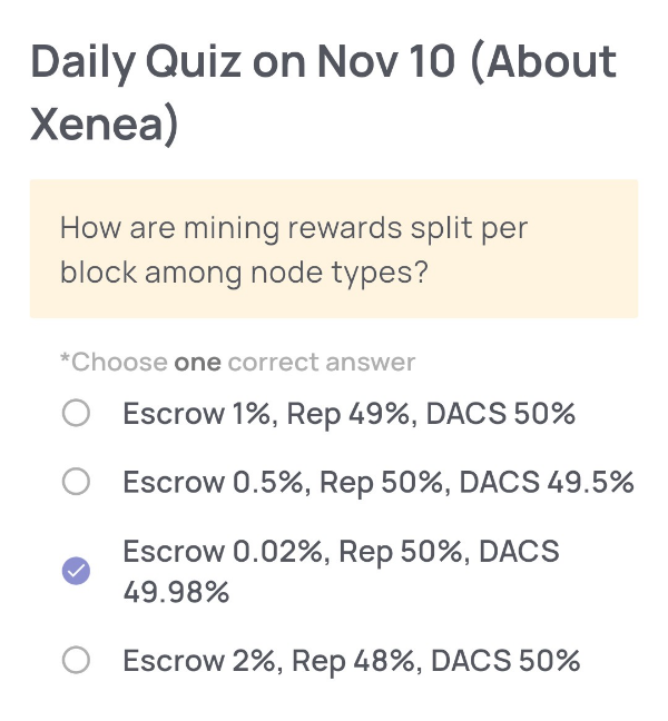 XENEA Walletでは、ユーザーのエンゲージメントを高めると同時に、Web3やXeneaに関する知識を習得させるために、ゲーム感覚で楽しみながら学べるDaily Quizがあります。