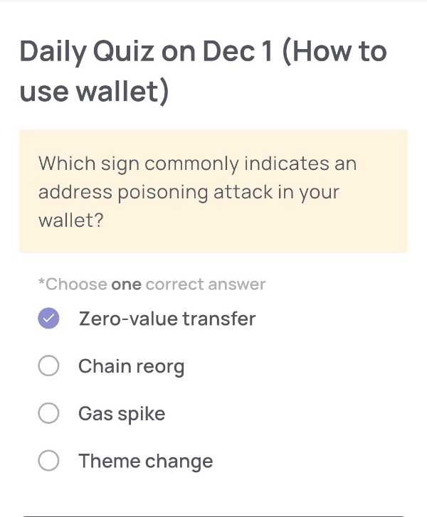 訳:ウォレットでアドレス・ポイズニング攻撃を受けている可能性がある一般的な兆候はどれですか?