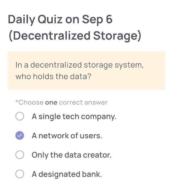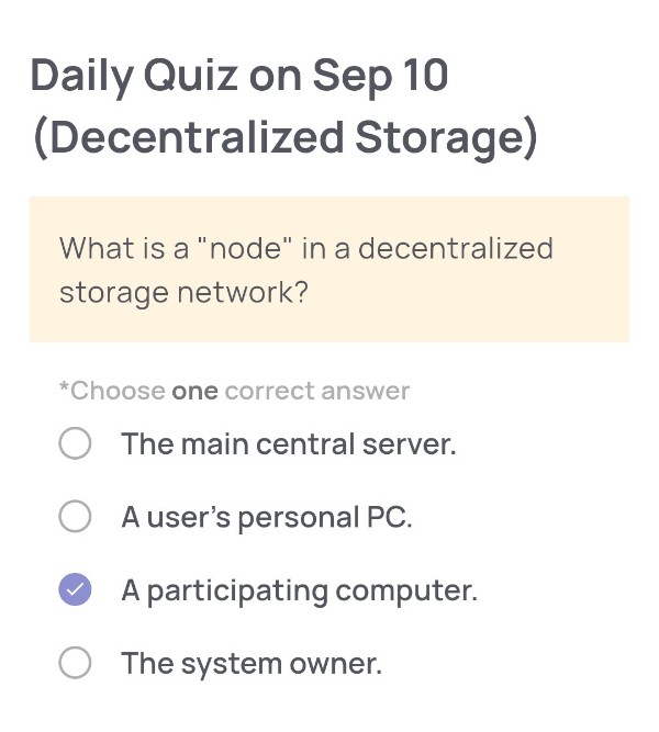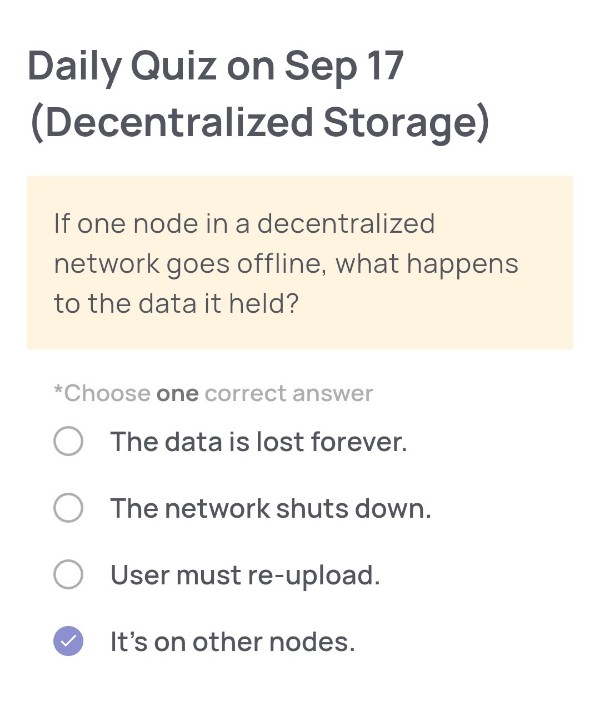 In a decentralized storage system, data is not controlled by a single company or centralized authority. Instead, it is distributed across a network of independent users (nodes). Each node stores a portion of the data or helps verify its availability, ensuring that no single party has complete control. This structure improves security, resilience, and censorship resistance compared to centralized systems.