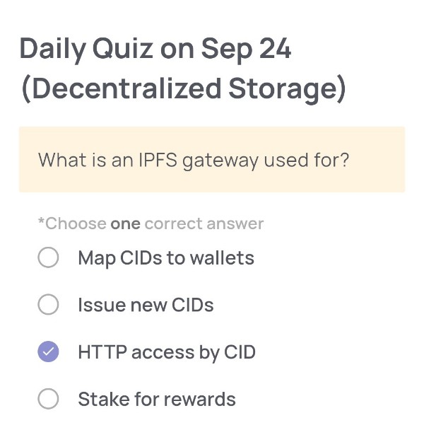An IPFS gateway allows users to access files stored on the InterPlanetary File System (IPFS) through a standard web browser using HTTP. Since IPFS identifies files by their Content Identifier (CID), the gateway maps the CID to a retrievable HTTP link, enabling easy access without needing to run an IPFS node locally.